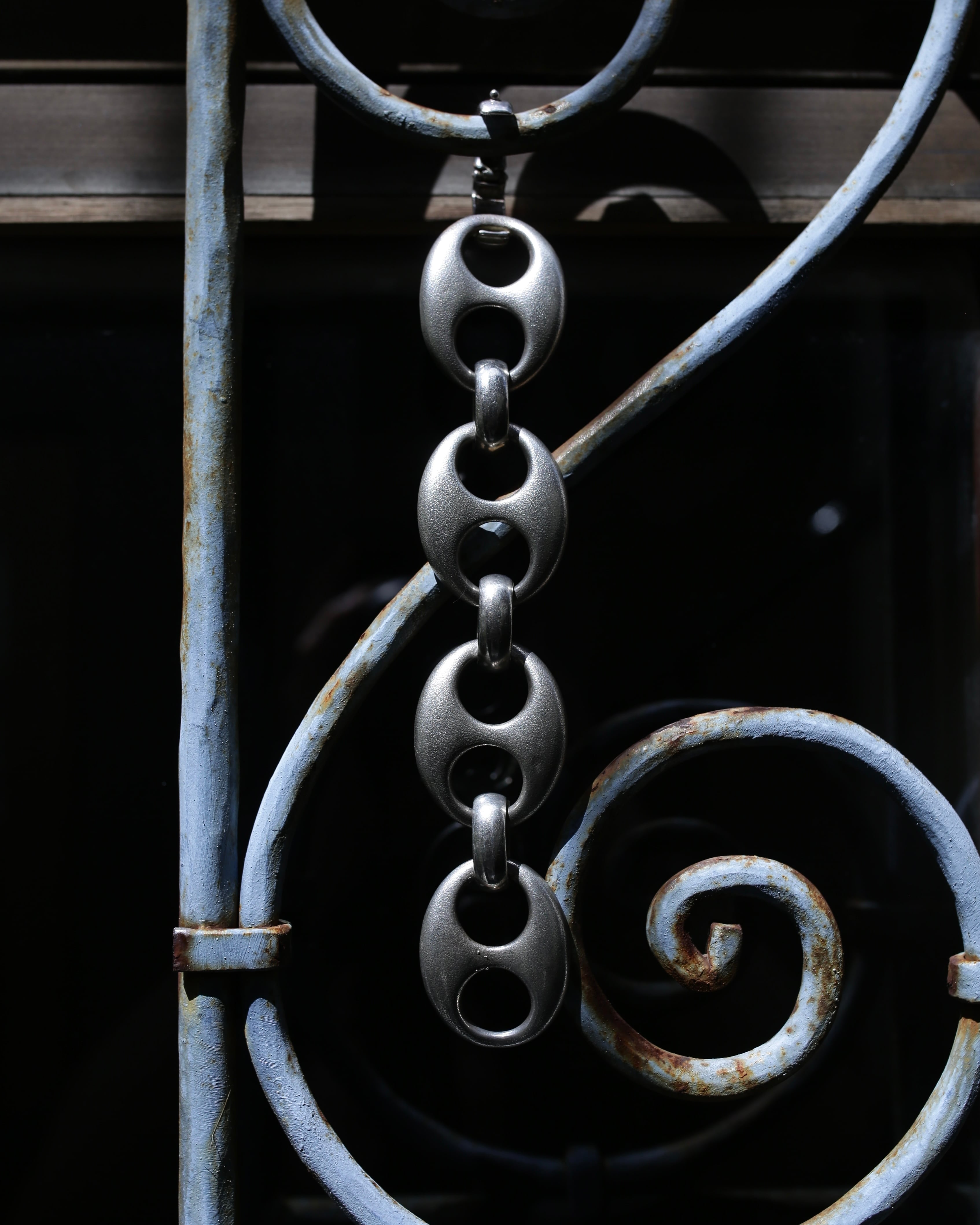 今のシーズン、Tシャツなどで軽くなるスタイルに着けていただくと重みとメリハリを出してくれるブレスレットです。