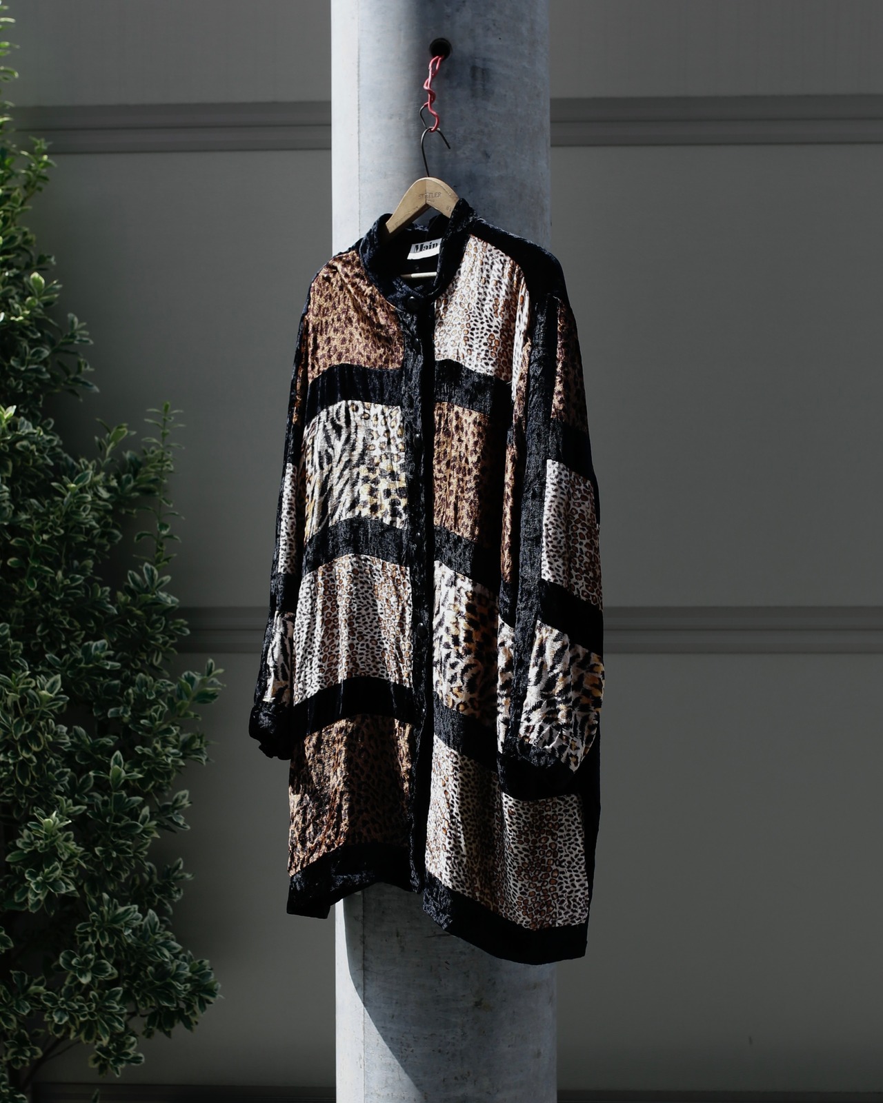 1980's cotton rayon leopard velours shirt cardigan.