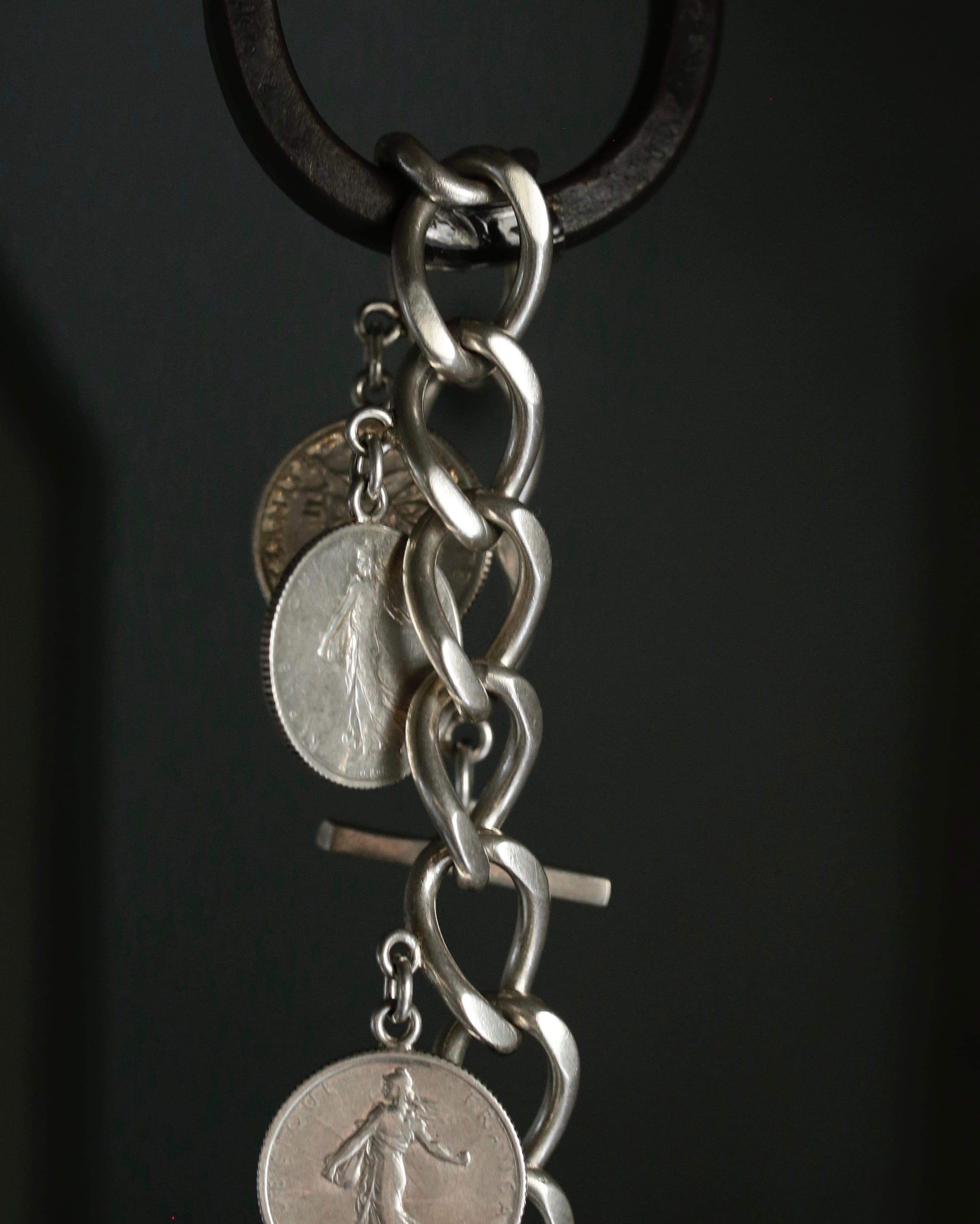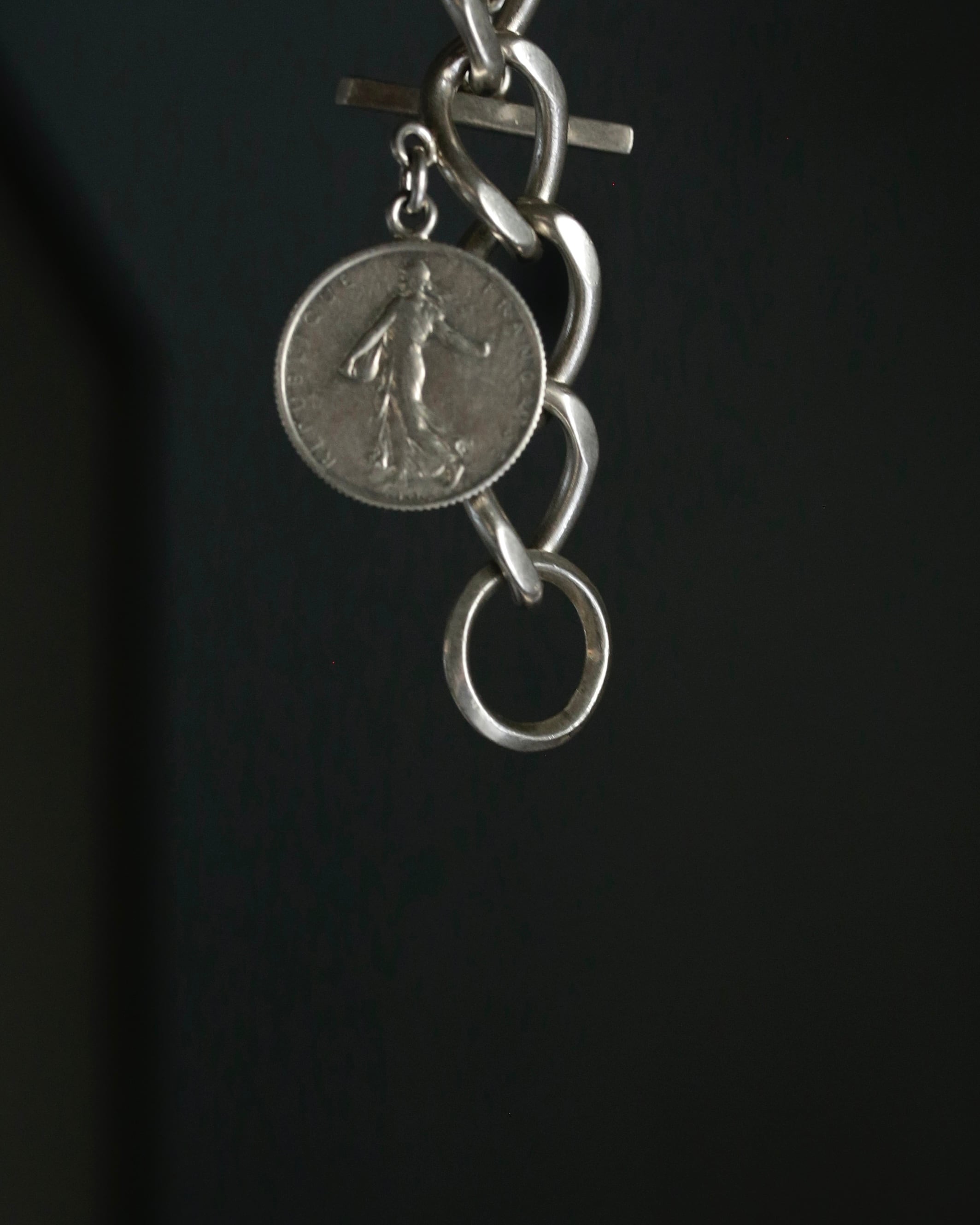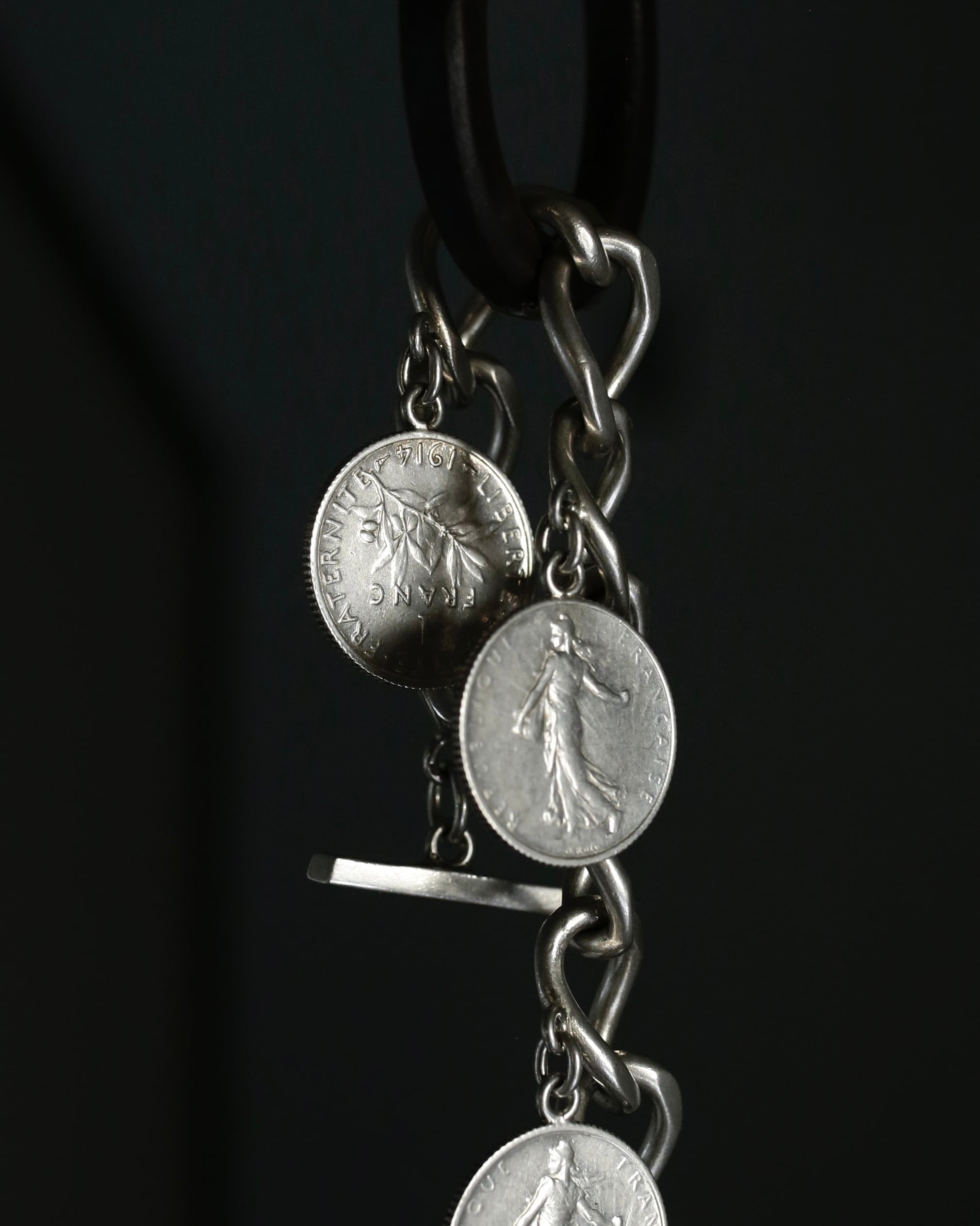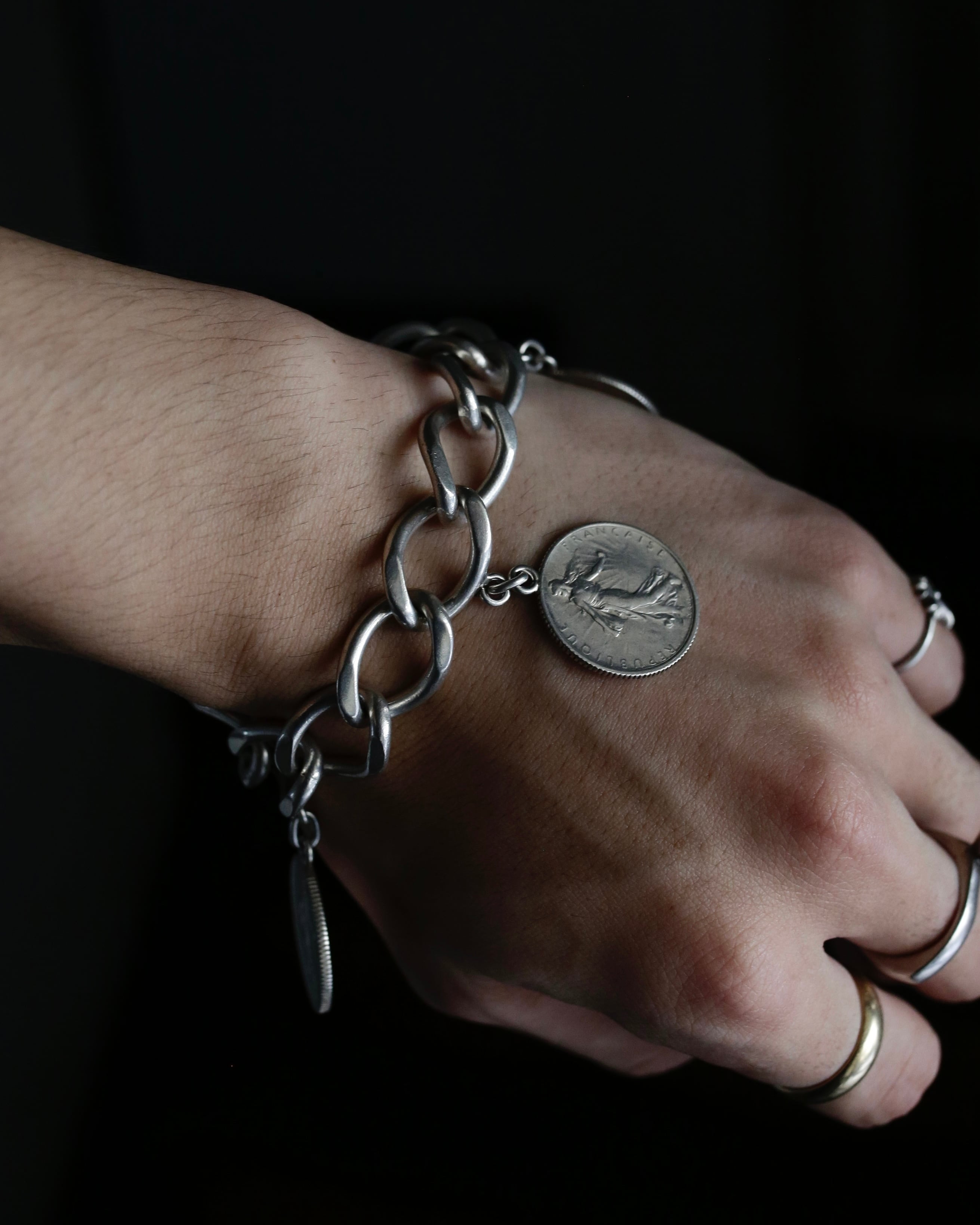 フランスの旧硬貨である20年代頃までの1フランス銀貨を使用したメダルブレスレット。