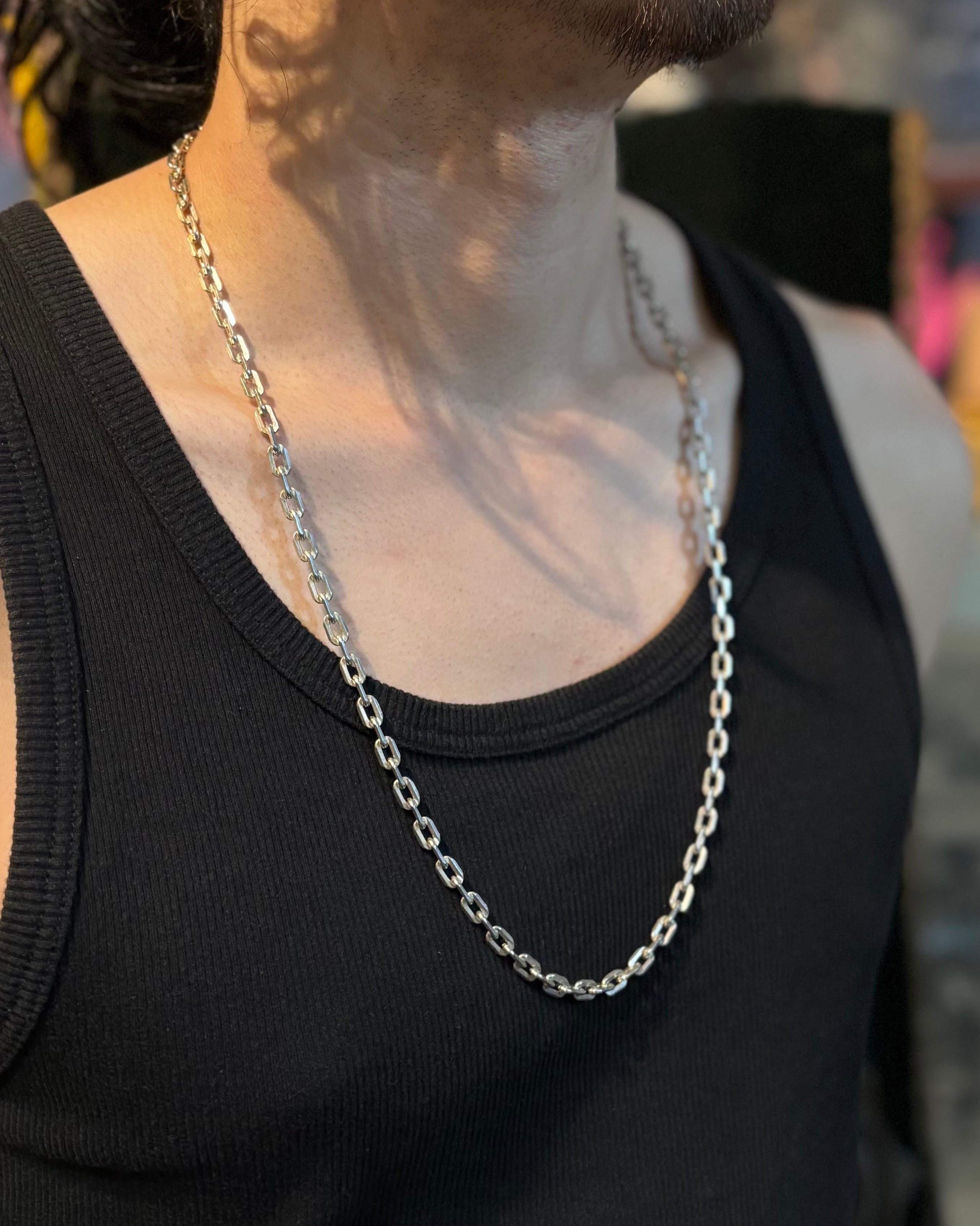 ボリューム感とシンプルな塩梅のバランスがいいロングチェーン探すとなかなか見つからないと思います。