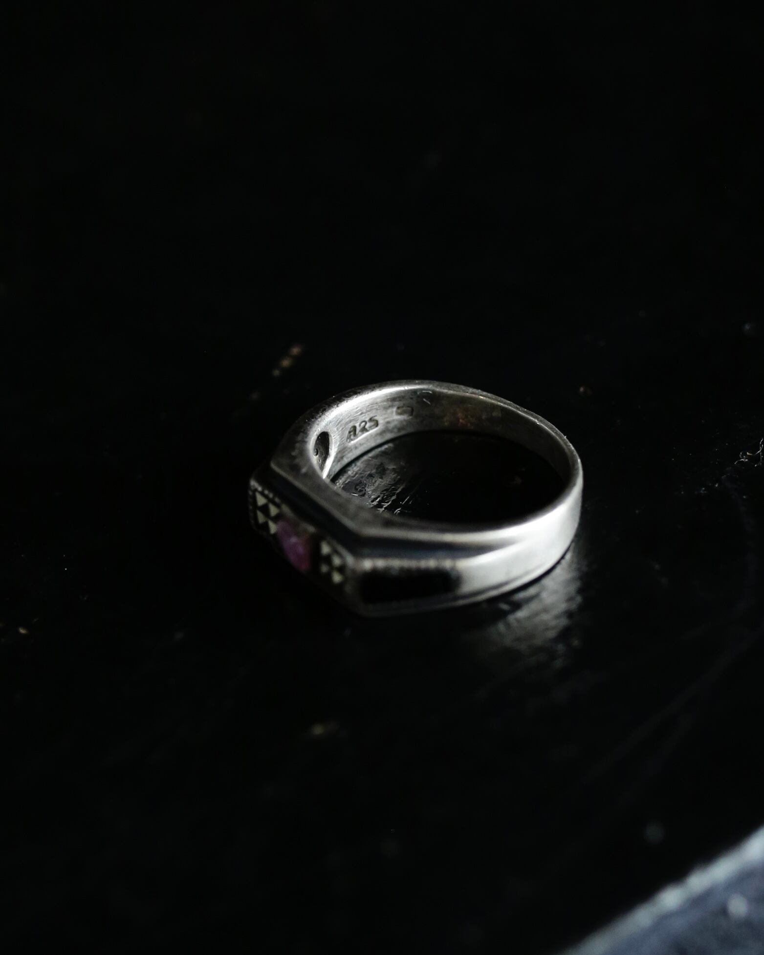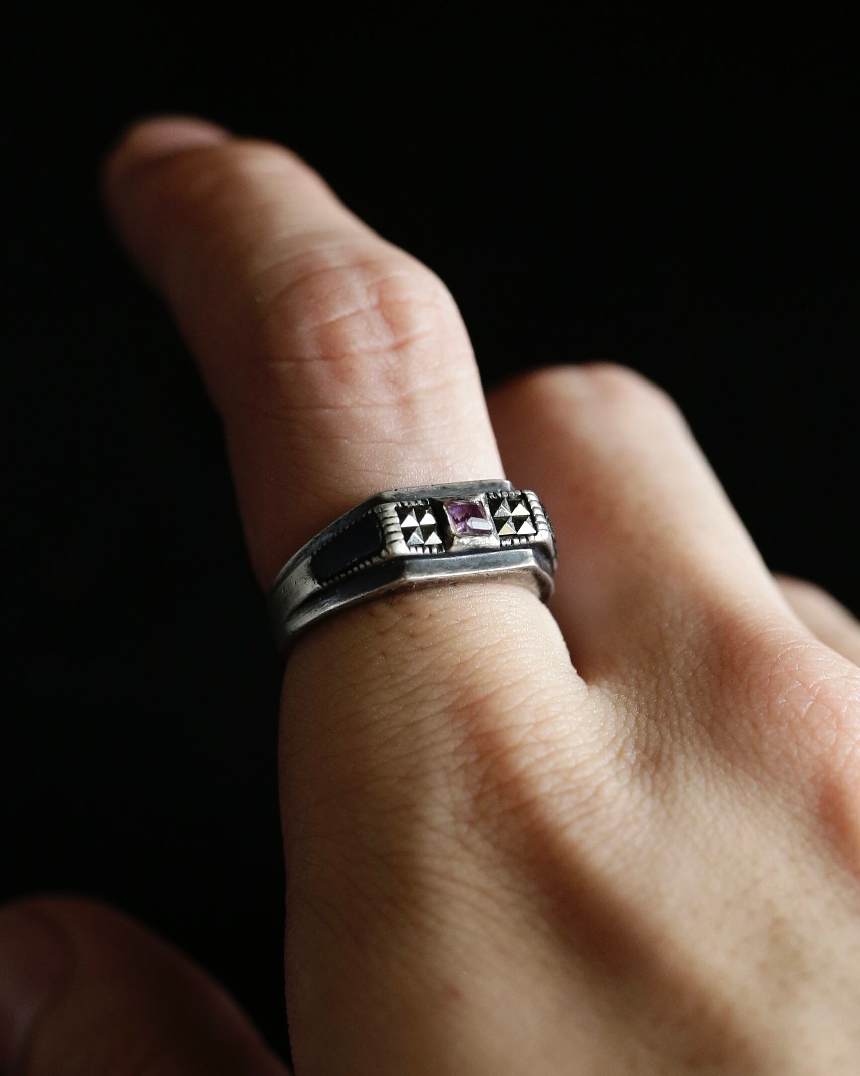 1940-50's art deco tank motif silver ring from FRANCE.