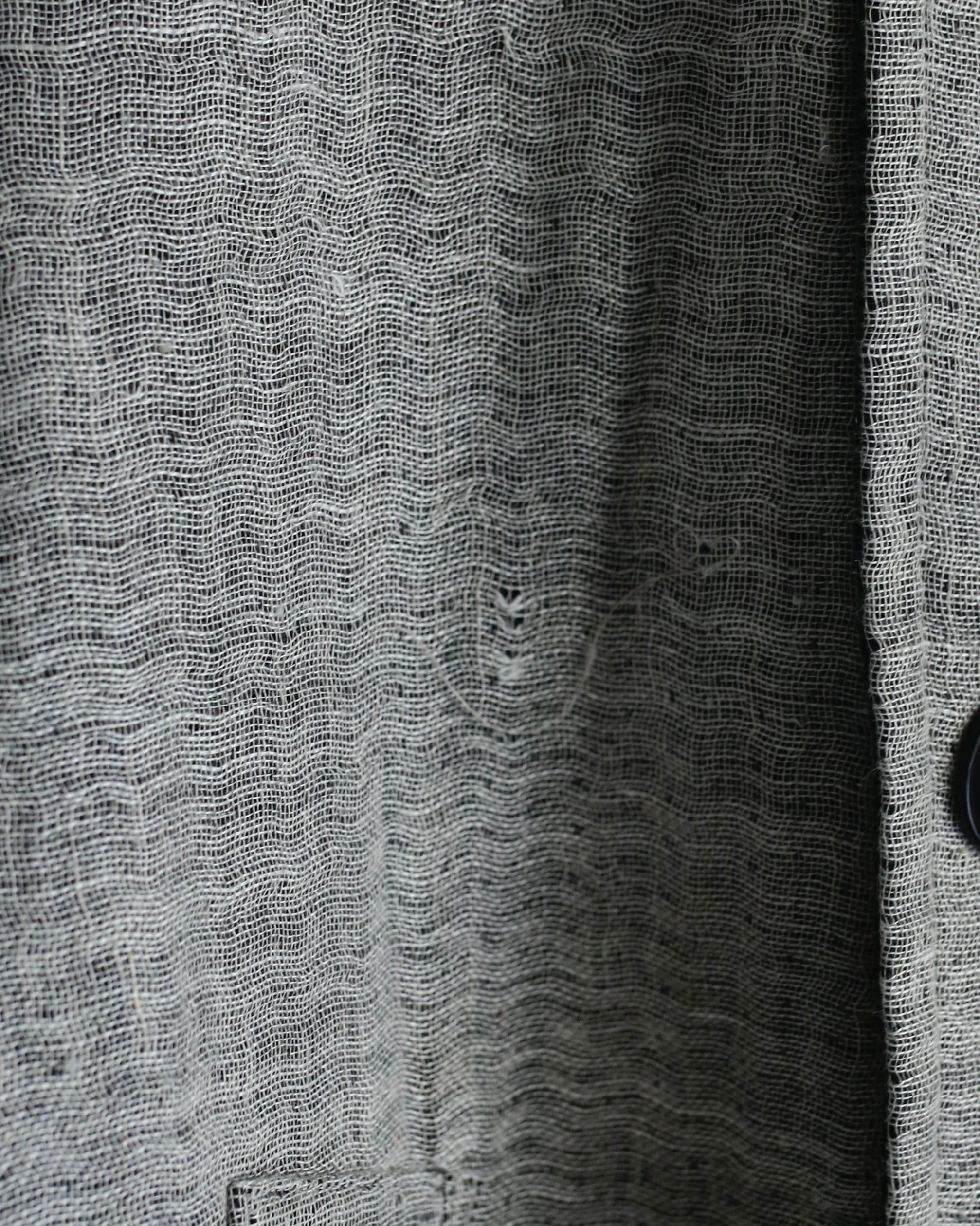 国産のウールリネン生地はベースのウールに対して、リネンが表面に接結して織られた生地。