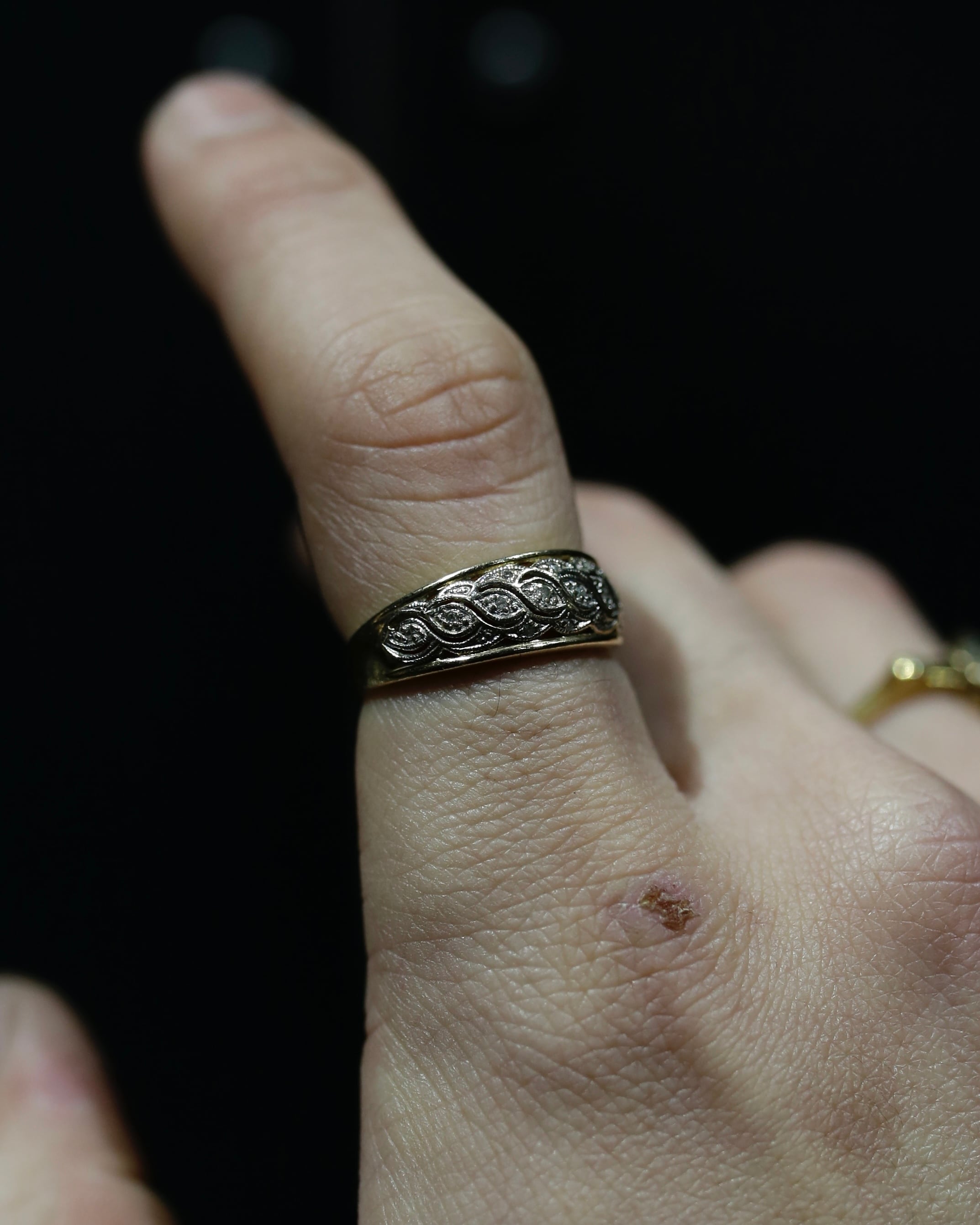 1950-60's 9kgold leaf&diamond ring from U.K.