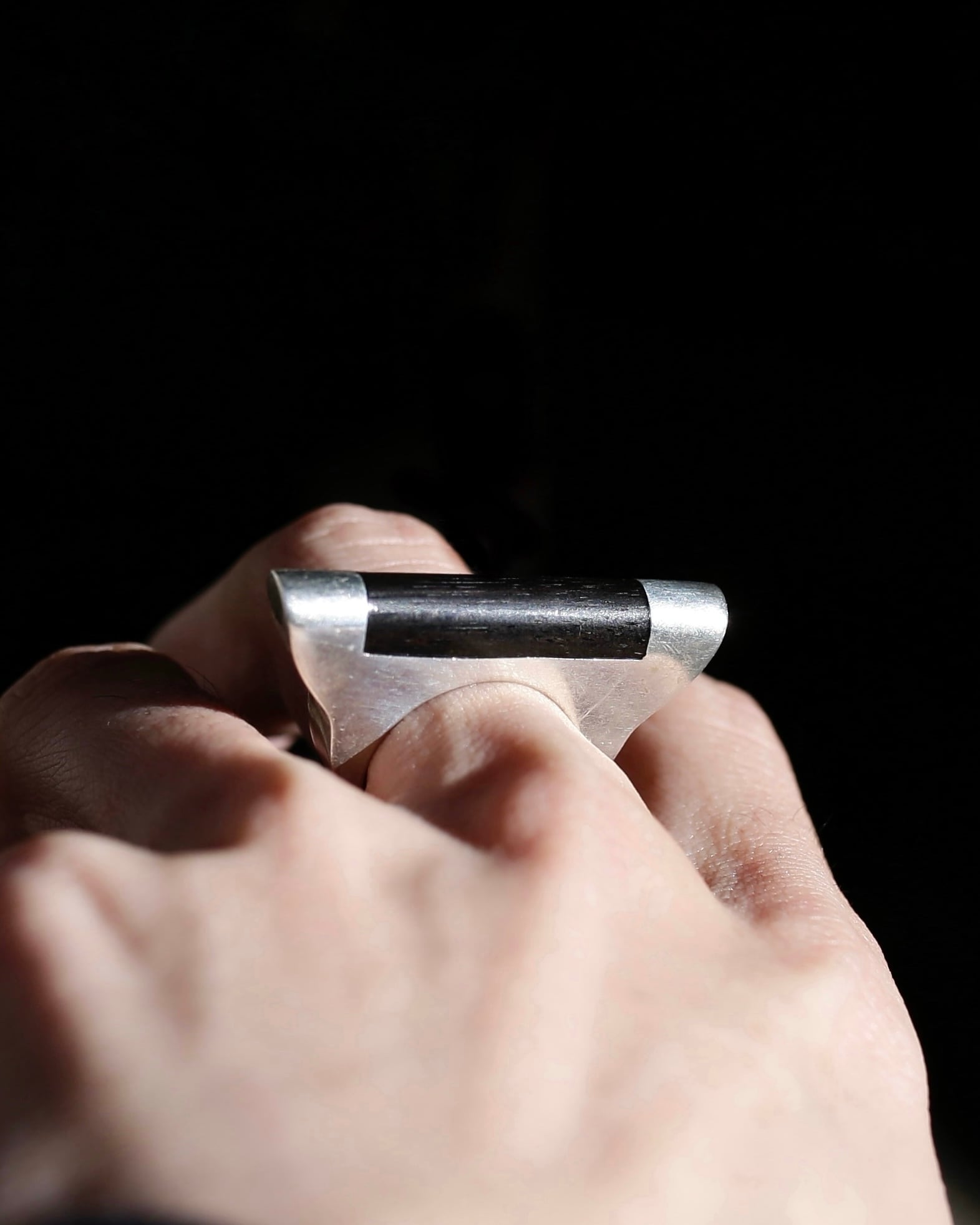 1970-80's Armor shape silver925&ebony wood sculpture ring from Denmark.