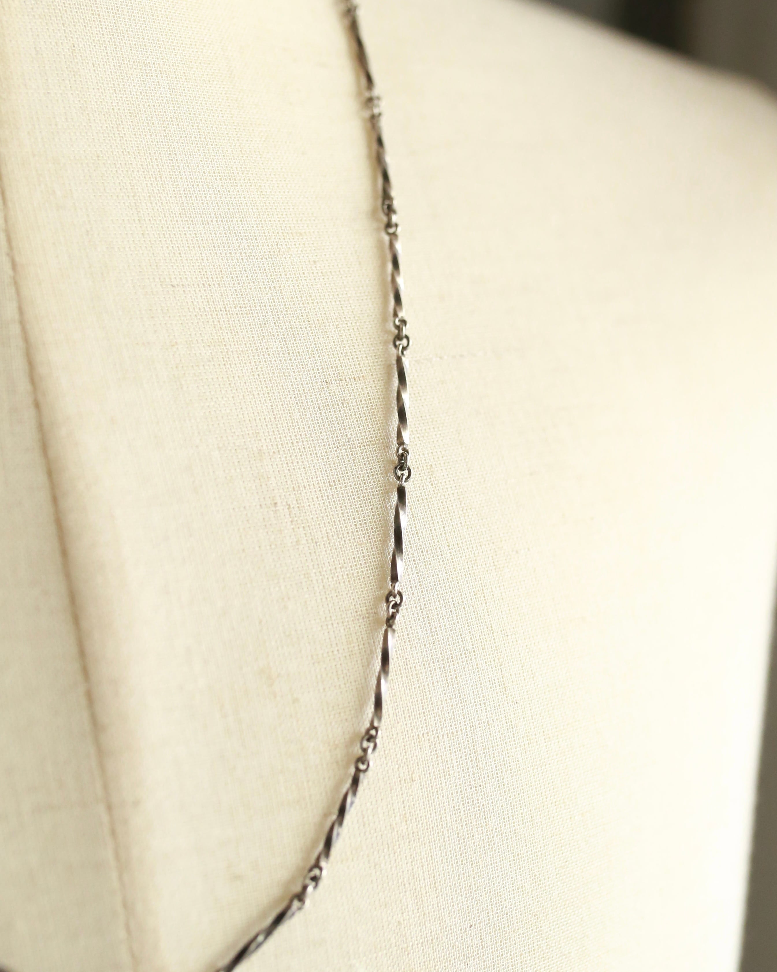 DNA構造のチェーン、また一本の角棒を捻ったデザインをドッキングしたネックレス。
