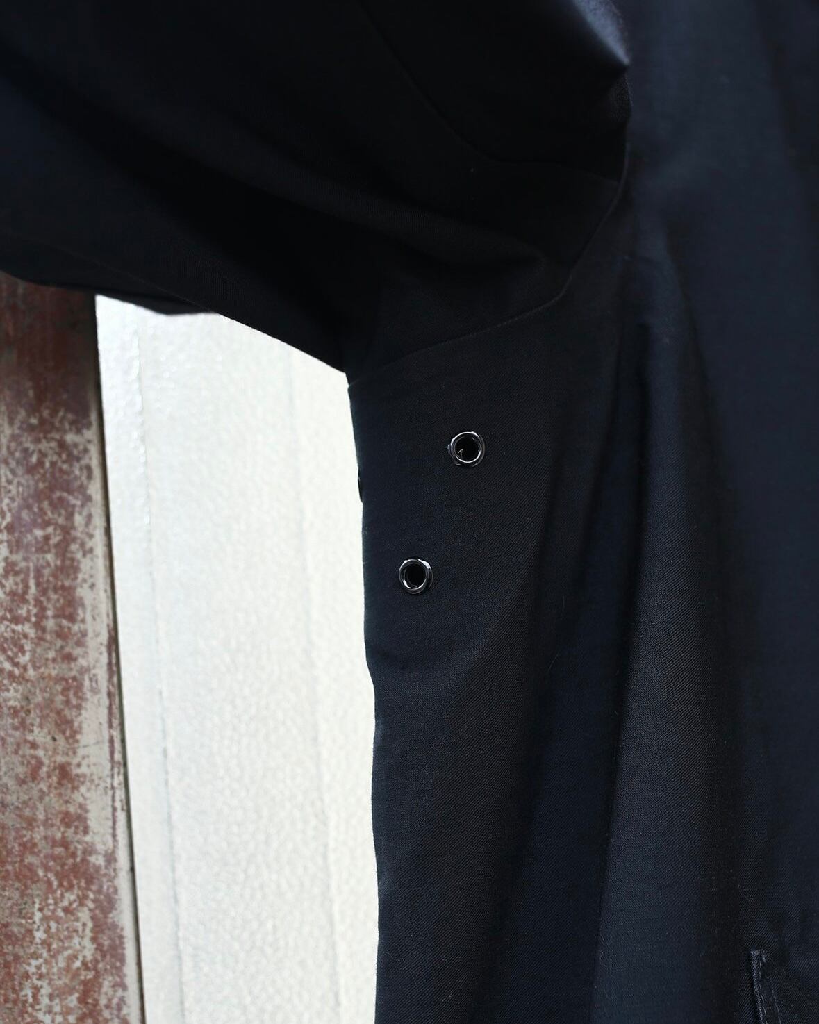 オーバーサイズ、ブラックのゴム引きのファブリックの迫力は異様で、プラダ等の現代のモードを凌駕する塩梅。