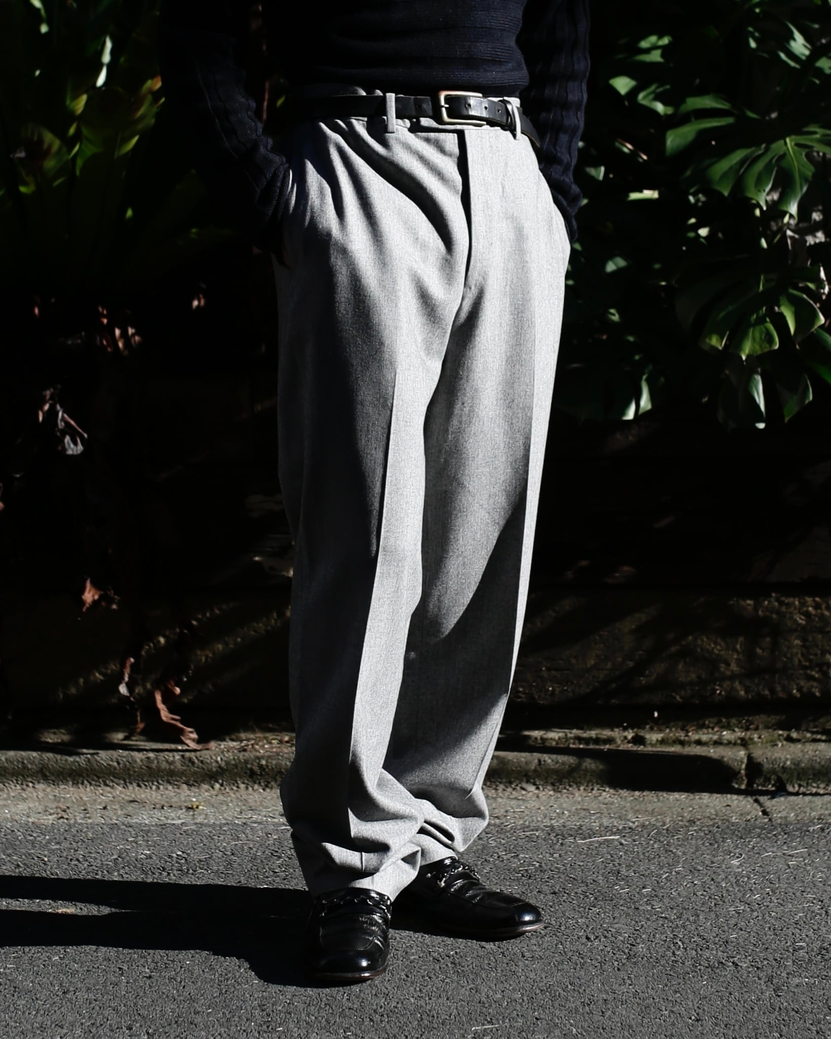 ウエストがやや大きいため、ベルトでぐっと絞って着用するとドレープがまた美しく上品。