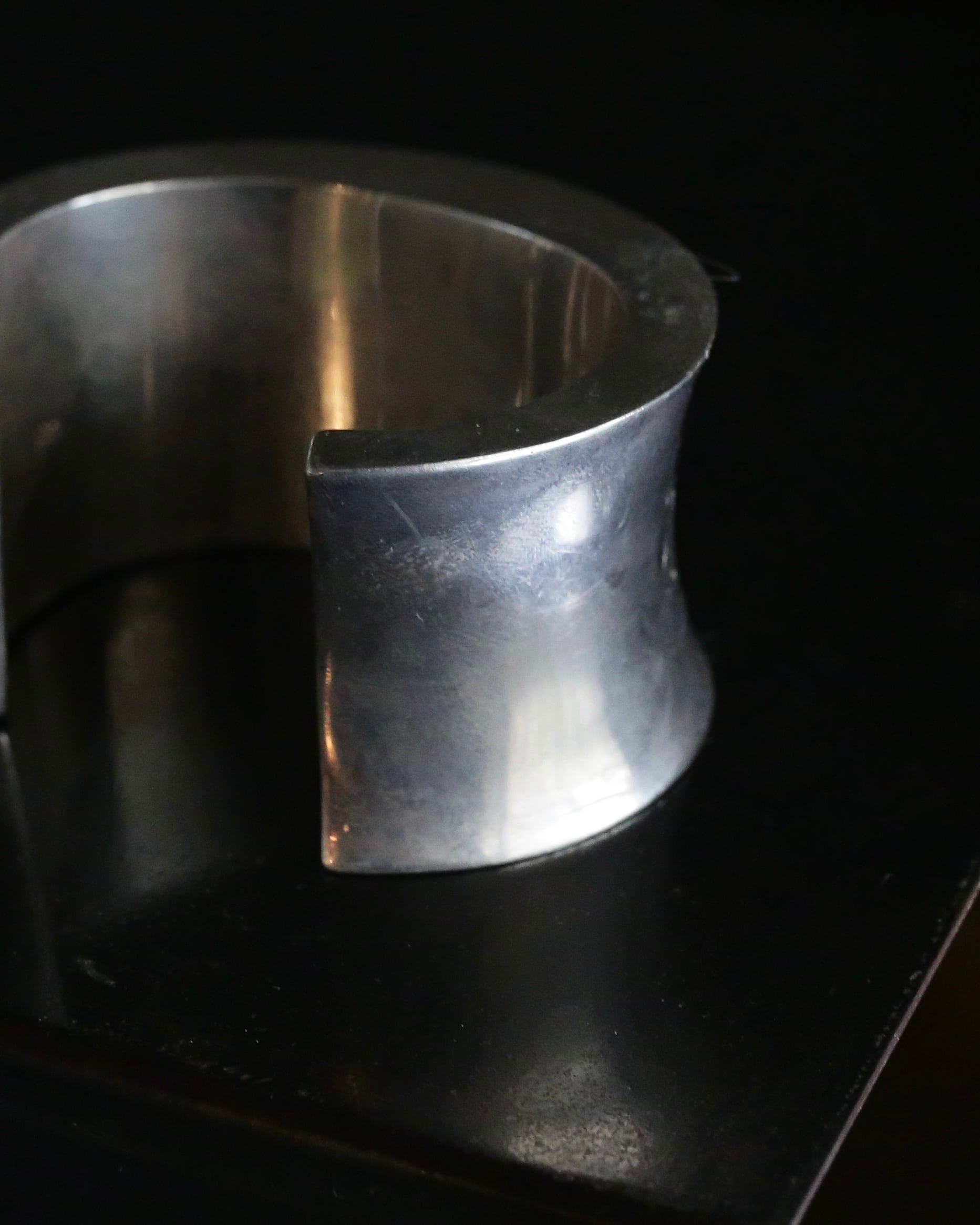 かなり大きいボーンカフですが、付けるとまたシンプルでモダンに飾れるため一才のしつこさはありません。